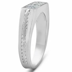 Buy 🔔 Pompeii3 10k White Gold 5/8 Ct 3-Stone Mens Braided Heavy Weight Ring Wedding Band 👍
