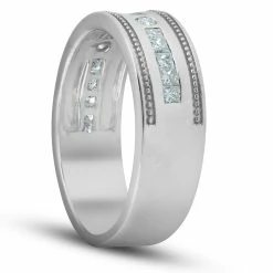 Best Sale ⌛ Pompeii3 1/2 Ct Mens Blue Diamond Princess Cut Wedding Ring 10k White Gold ✔️