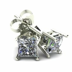 1.00 carat total weight si quality square princess cut natural diamonds are set in a solid metal earring finding. Earrings are accompanied with solid metal push back earring backings.