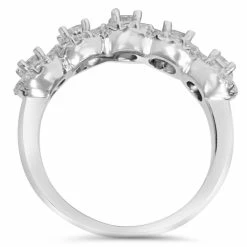 Womens ring features 47 round cut diamonds set in solid 14k white gold.