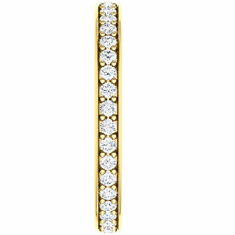 Womens ring features round brilliant cut sparkling genuine eco friendly lab grown diamonds. The diamonds are prong set in a solid 14k yellow gold high polished mounting.