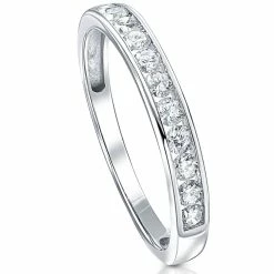 Womens ring features 11 round cut diamonds channel set in 10k white gold. This is the perfect diamond ring to stack with other bands, wear alone, or compliment your engagement ring. Its as classic and traditional as it gets. IGI Certificate is included.