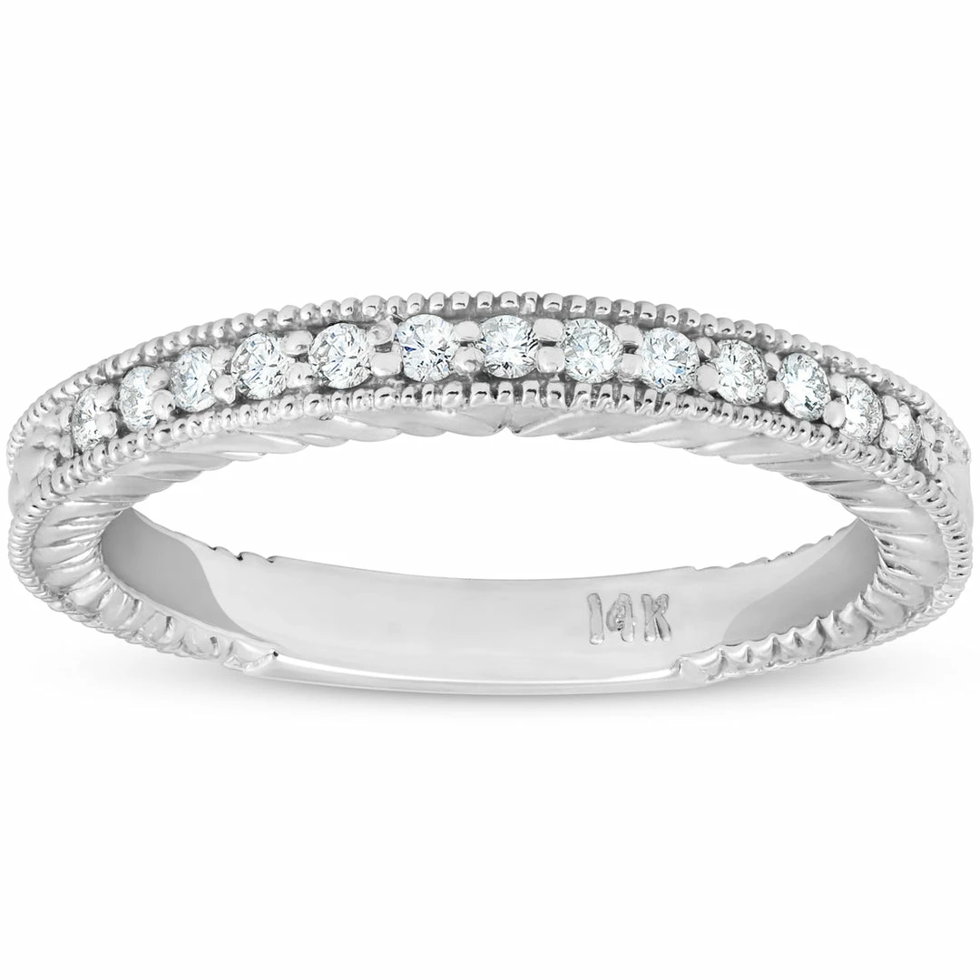 Wholesale ✔️ Pompeii3 1/5ct Diamond Vintage 👩 Womens Wedding Ring Stackable 14k White Gold Band ✔️