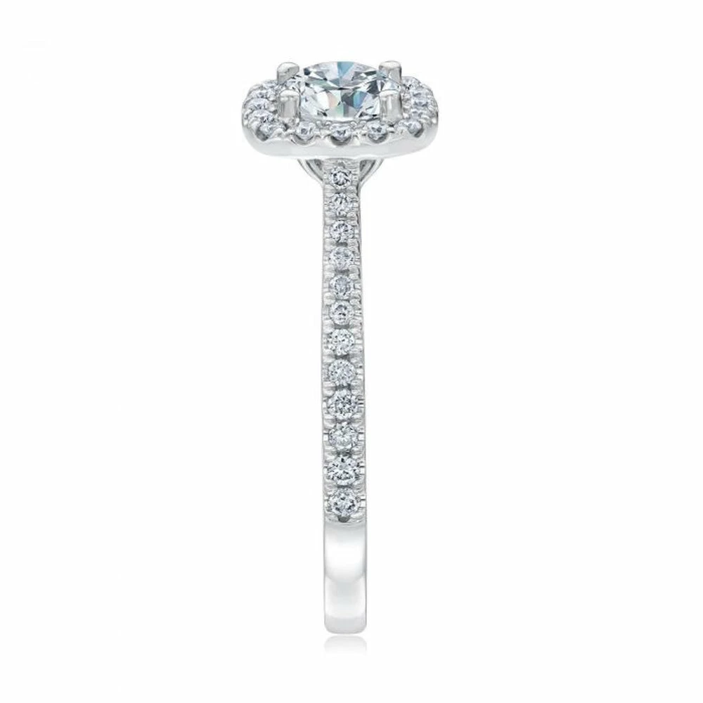 This classic and traditional women’s engagement ring features a 3/8ct round cut genuine diamond. The center stone is flanked with round cut accent diamonds. All diamonds are pave prong set in solid 10k white gold high polished mounting. This is the perfect diamond engagement ring to enjoy forever!
