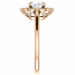 This quality women’s ring features one oval cut genuine enhanced diamond and four round cut diamonds. The diamonds are set in solid 14k rose gold high polished mounting. This is perfect for an engagement or anniversary ring.