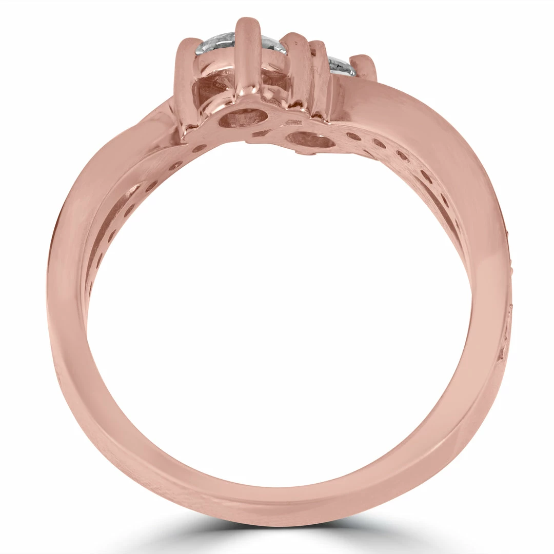Womens ring features 20 round cut diamonds. The diamonds are set in solid 10k rose gold.