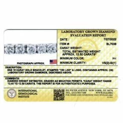Womens bracelet features 38 round cut genuine lab grown diamonds. All diamonds are prong set in solid 18k white gold. Bracelet weighs 18 grams and features a double locking clasp. Bracelet measures 7″ long. IGI certificate is included.
