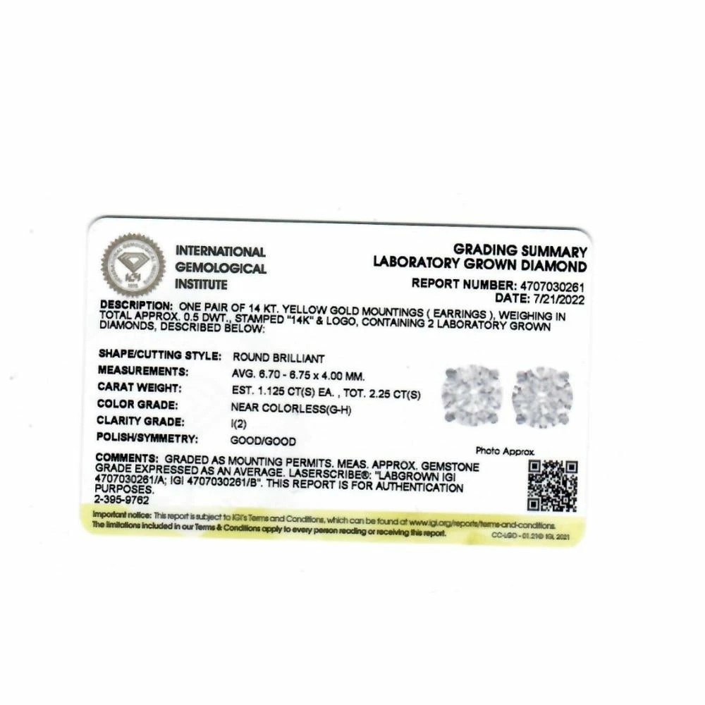 Cheap 🤩 Pompeii3 2 1/4 Ct T.W. Certified Diamond Screw Back Studs Lab Grown 14k Yellow Gold for 👩 women 🌟