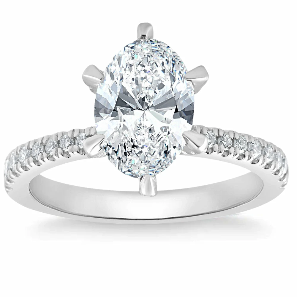 Cheapest 🔔 Pompeii3 2.61 Ct TW Certified Oval Diamond Engagement Ring With Side Halo Lab Grown for 👩 women 🥰
