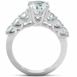This stunning womens ring features a 1ct round brilliant cut genuine enhanced diamond and six round accent diamonds. All the diamonds are set in solid 14k white gold.