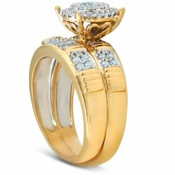 Womens classic bridal engagement ring set features round cut genuine diamonds. All the diamonds are set in solid 10k yellow gold high polished mounting. Matching wedding band is included.