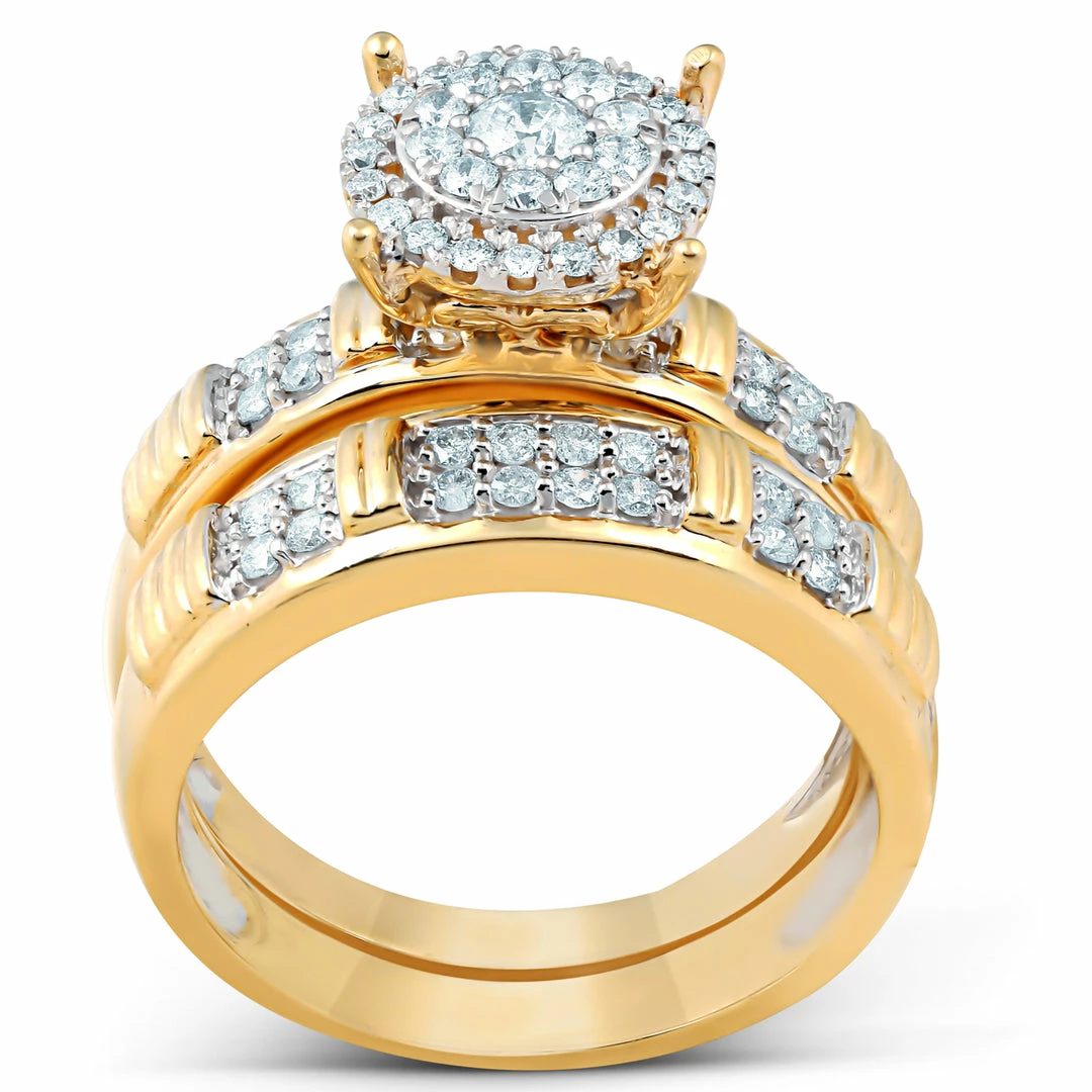 Best Pirce ⭐ Pompeii3 3/4 Ct Halo Diamond Engagement Wedding Ring Set 10k Yellow Gold for 👩 women 🛒