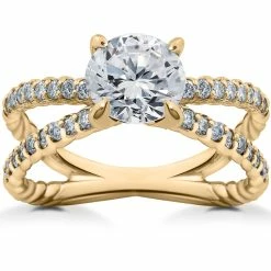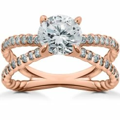 Engagement ring features 40 round brilliant cut genuine EX3 lab grown diamonds. All diamonds are common prong set in high polished hand braided split shank style setting. The ring giving has a classic ring style with vintage twist.