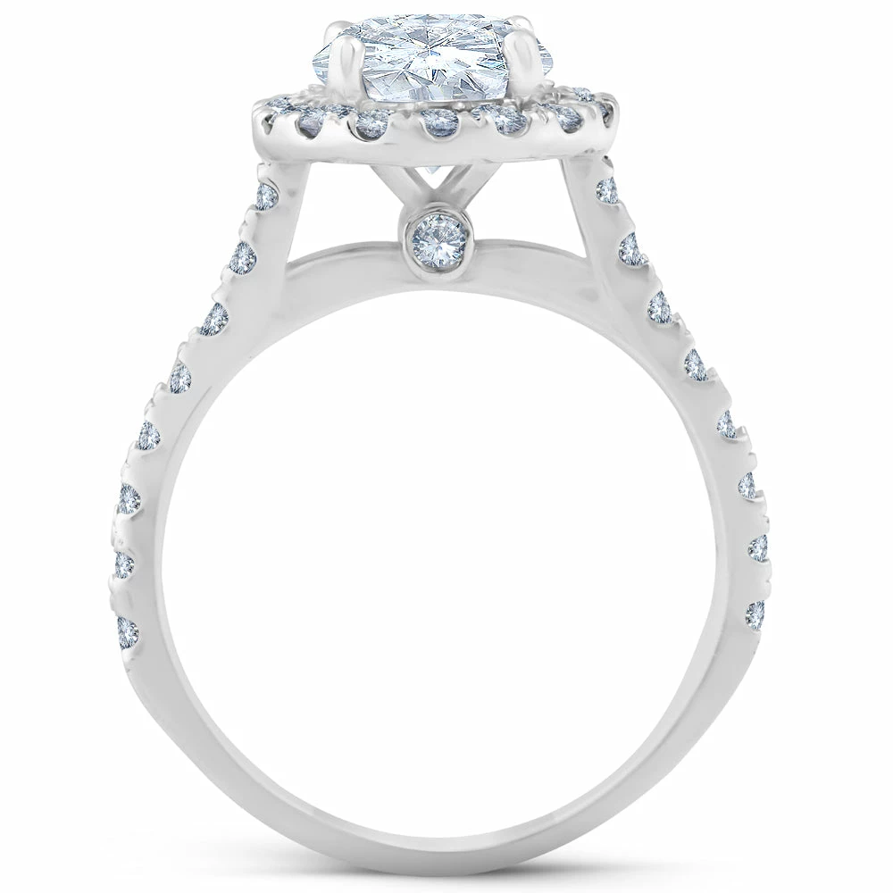 Best Pirce ❤️ Pompeii3 3 Ct Diamond Halo Engagement Ring Matching Wedding Band Set 14k White Gold for 👩 women 🔔