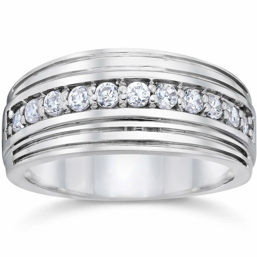 Outlet 🤩 Pompeii3 Mens Diamond 3/8ct Eternity Ring Wedding Band 14k White Gold High Polished 7MM ✨