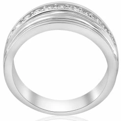 This high quality mens ring features 11 round brilliant cut genuine diamonds. All diamonds are common prong set in solid durable heavyweight mens ring.