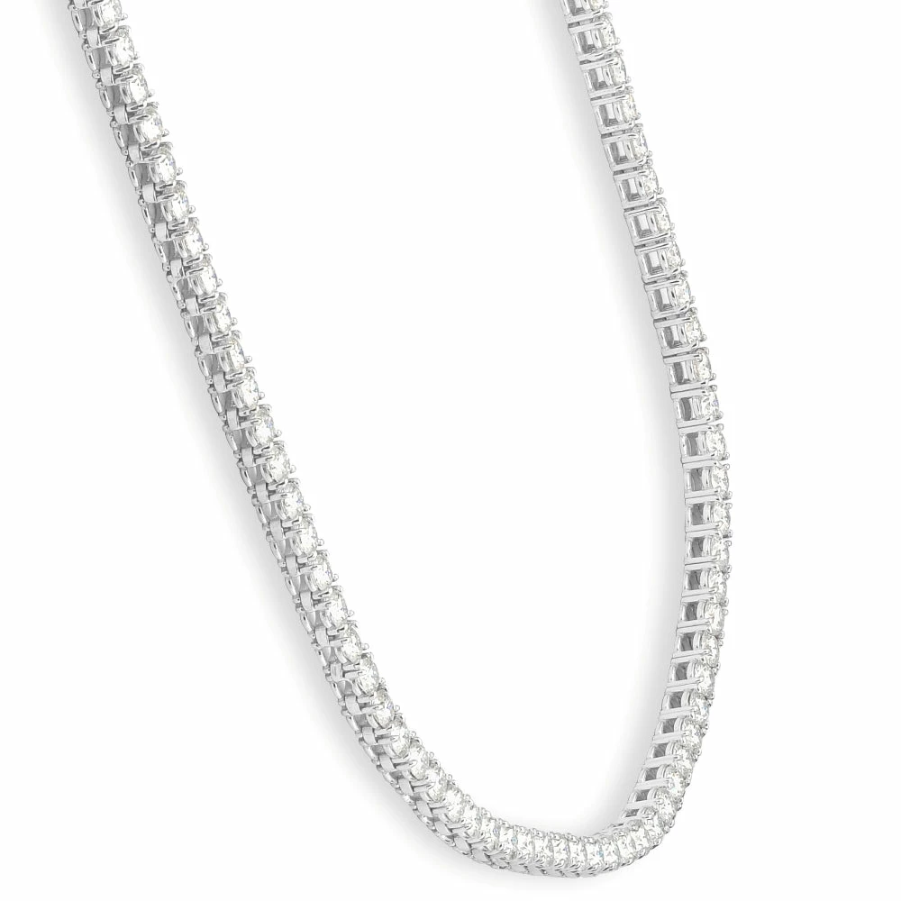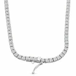 Women’s high-quality tennis necklace features round brilliant cut moissanite stones . All stones are set in solid 14k white gold flexible high polished 18″ mounting.