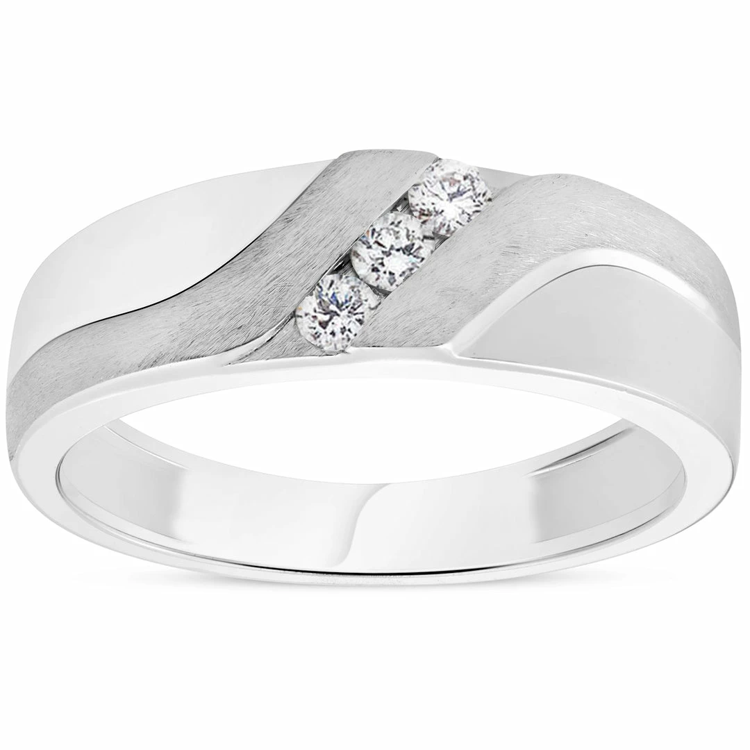 Cheap ๐ Pompeii3 Mens 3/8ct White Gold Diamond 10k Brushed Wedding 8MM Anniversary Band ๐