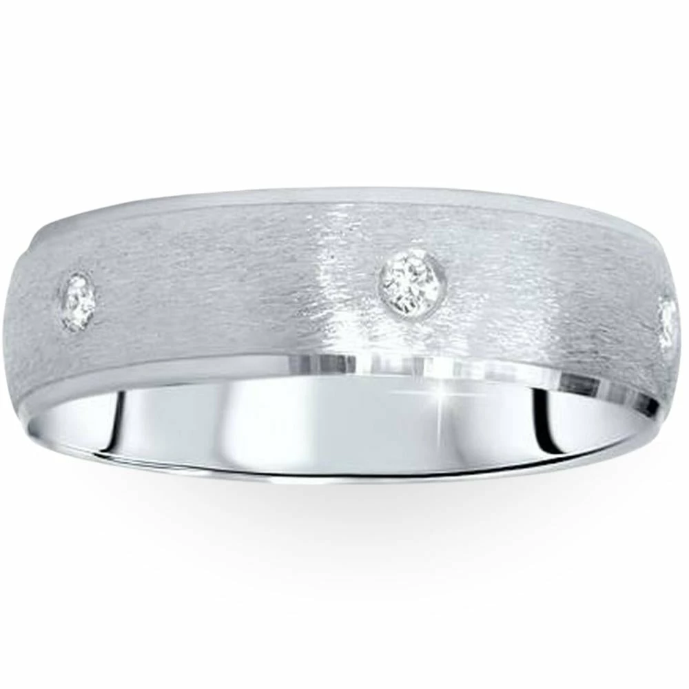 Buy 🔔 Pompeii3 Mens 1/10ct White Gold Diamond Ring Flat Classic Bushed Wedding Anniversary Band 🥰