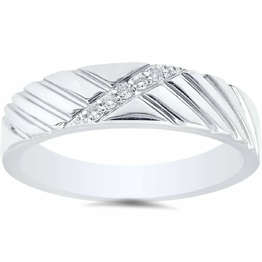 Buy โ Pompeii3 Mens 1/5ct White Gold Diamond 6.5mm Brushed Wedding Curve Anniversary Band โ