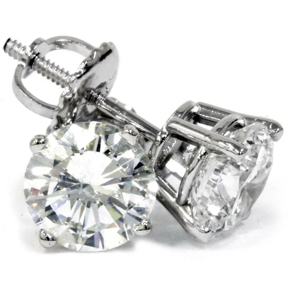 This matching large pair of studs features two round brilliant cut natural diamonds. The diamonds are prong set in solid platinum setting with screw backs. The earrings are certified and included IGI certificate card.