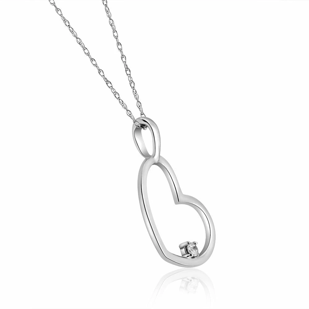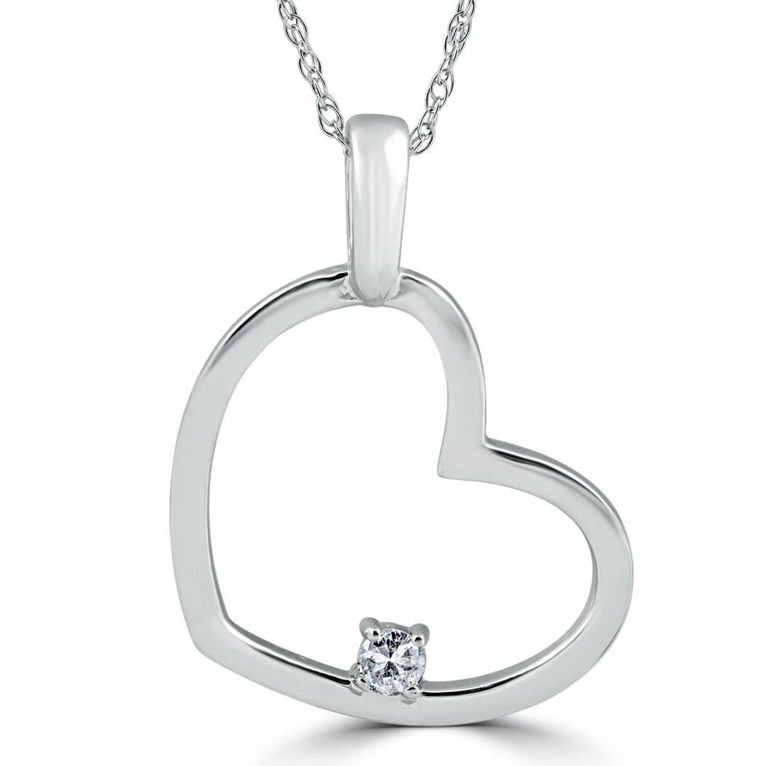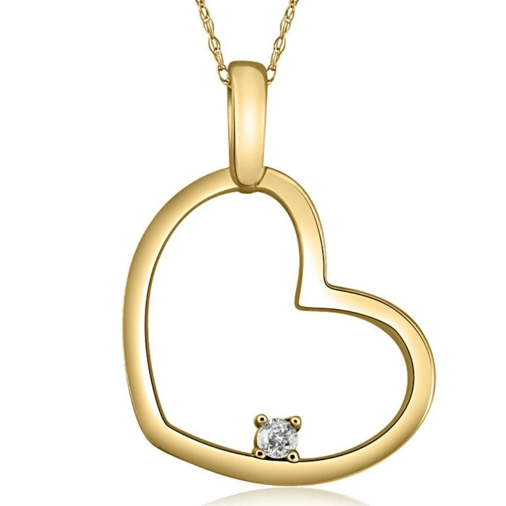 Women’s heart pendant features a .05ct diamond set in solid 10k gold. An 18″ 10k gold chain is included.